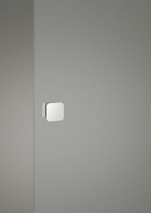 L’essenzialità di Living si rivela nella compenetrazione di forme elementari riconducibile alle due componenti della maniglia: la parte orizzontale propriamente detta, destinata alla presa, e l’innesto del volume sottostante, adibito a collegamento con il piano della porta e funzionante da asse di rotazione.