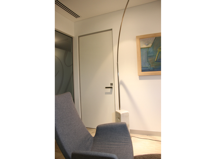The technical and mechanical solution is combined in a single block, which allowed for the integration of the classic rose, making the solid body of the connector between lever and door become one component. For its part, the lever is a simple, thin parallelepiped made from a length of ribbon.